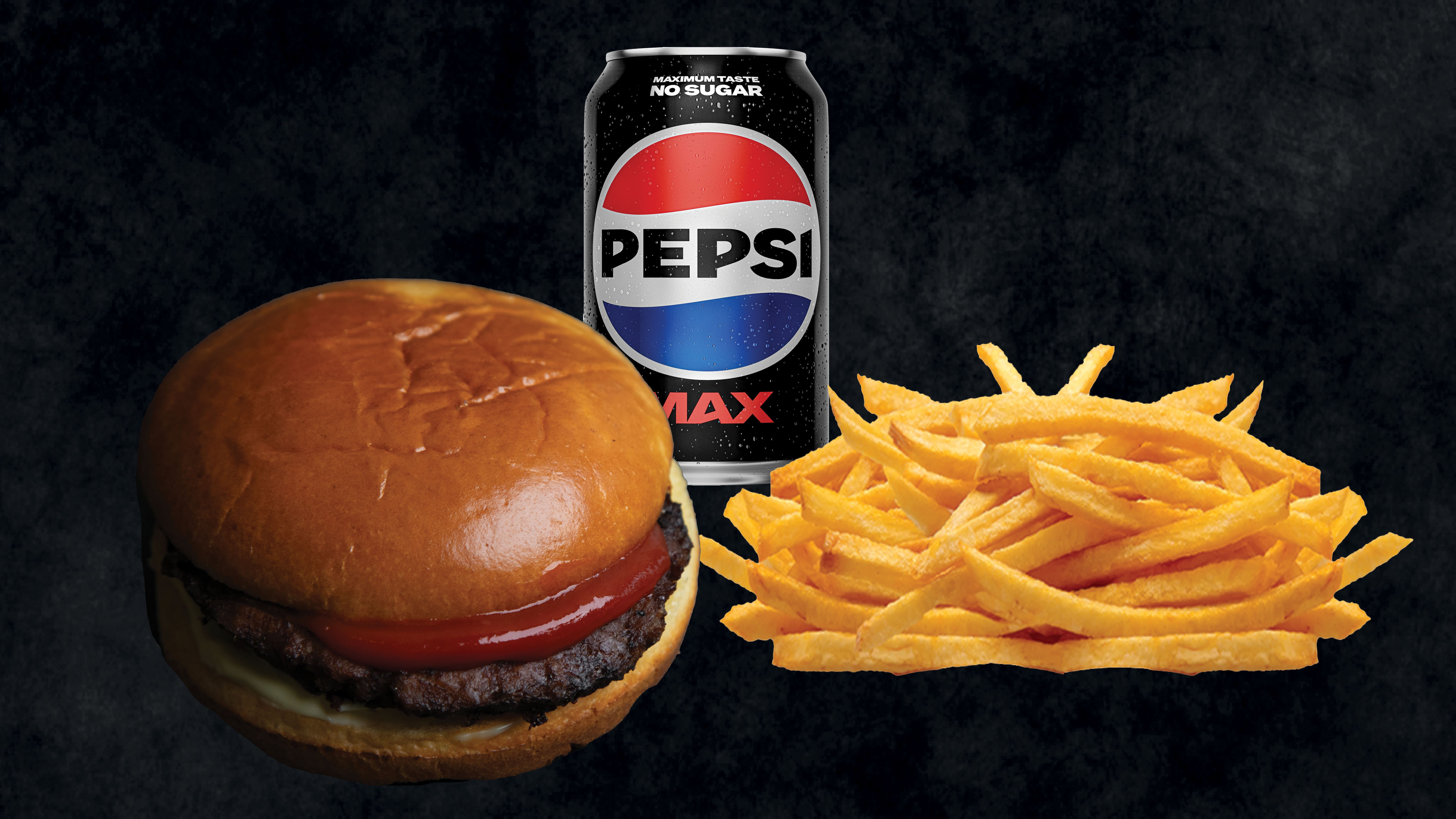 2x 150 g bøf, mayo, salat, hjemmesyltede rødløg, agurkesalat, dobbelt ost, ketchup, amerikansk sennep.